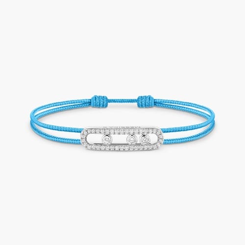 A blue cord bracelet featuring a paved Move motif in white gold 750 set with diamonds and with 3 movings diamonds in its center