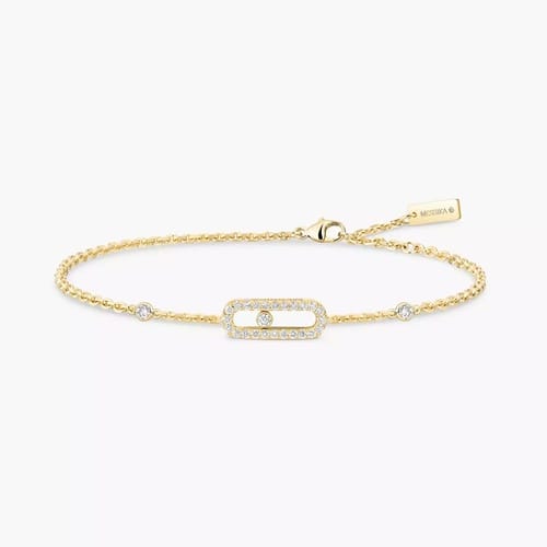 A fine chain bracelet in yellow gold 750 adorning 2 brilliant cur diamonds and the Move motif with a single moving diamond