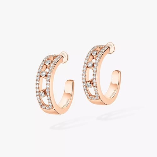 A pavé-set hoop earrings in rose gold 750 featuring the iconic Move motif with 3 moving diamonds at each side