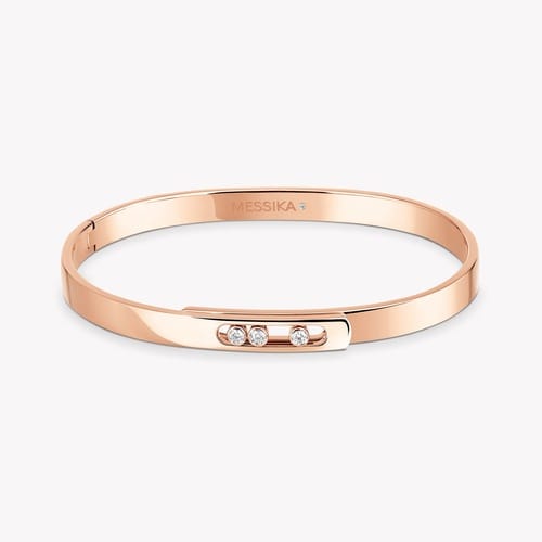 A slimmer version of the Move Noa bangle bracelet in rose gold 750 with 3 moving diamonds