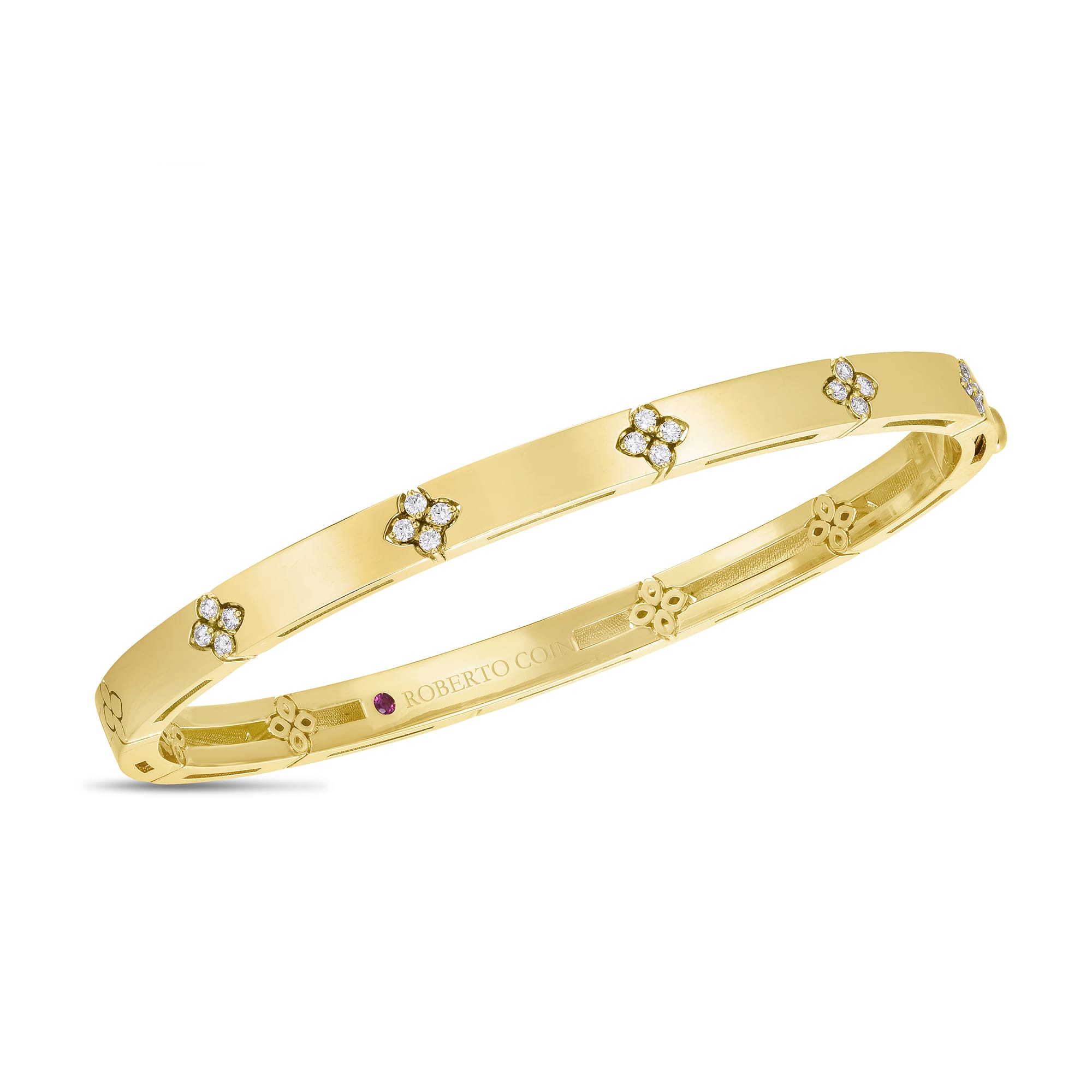 Bangle bracelet in white gold 750 engraved with Roberto Coin’s iconic flower motifs set with 20 diamonds