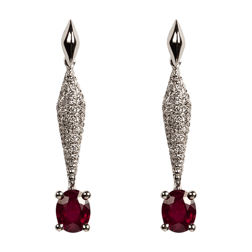 Drop earrings in white gold 750 set with 2 rubies and 64 diamonds