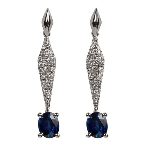 Drop earrings in white gold 750 set with 2 sapphires and 64 diamonds