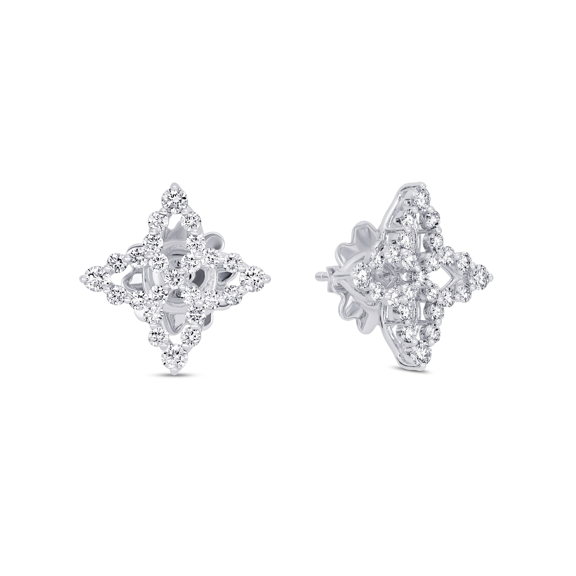 Earrings in white gold 750 featuring a cut-out motif of Roberto Coin’s floral design fully set with 50 diamonds