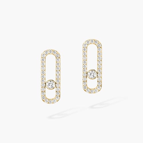 Earrings in yellow gold 750 pavé-set with brilliant-cut diamonds in a minimalist Move Uno design secured with an Alpa closure system for optimal fit