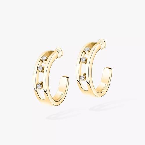 Hoop earrings in yellow gold 750 featuring the Move motif with 3 brilliant-cut diamonds at its center