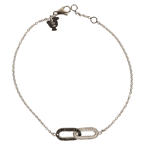 Intertwined ring bracelet in white gold 750 set with 50 black and white diamonds