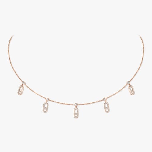 Move Uno Pampilles choker in rose gold 750 featuring 5 pavé-set Move Uno charms suspended from a fine adjustable rose gold chain