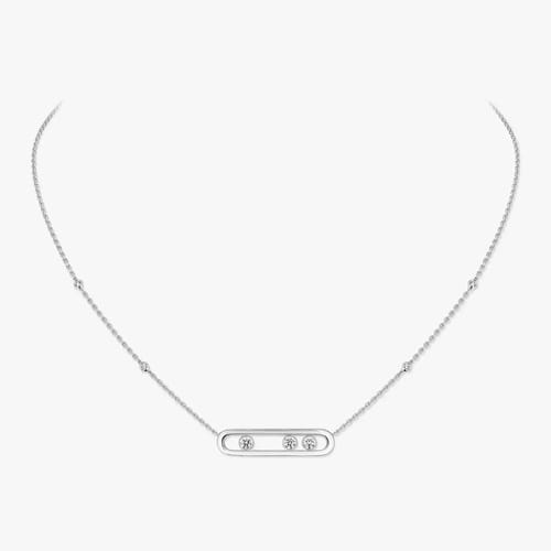 Necklace in white gold 750 featuring a Move design with 3 moving diamonds on a diamond-set chain