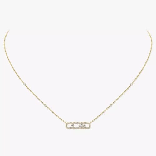 Necklace in yellow gold 750 featuring a pavé-set Baby Move design with 3 moving diamonds in its center and 4 diamonds set along the chain