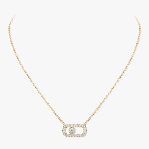 Necklace in yellow gold 750 featuring a XXL pavé-set Messika’s iconic motif with a central moving brilliant-cut diamond surrounded by a pavé-set halo