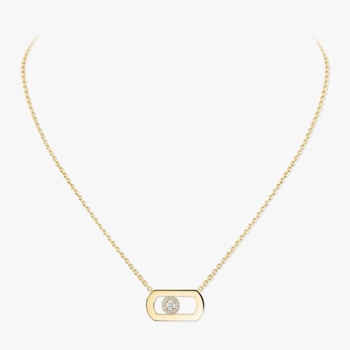 Necklace in yellow gold 750 featuring the iconic Move motif with 1 central moving diamond surrounded by a halo of diamonds