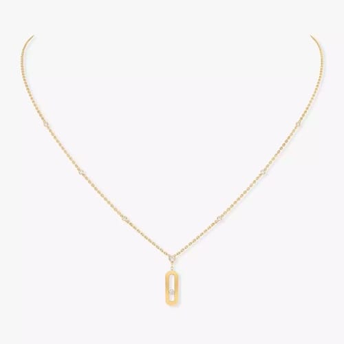 Necklace in yellow gold 750 featuring the Move motif with one moving diamond at it center and 7 diamonds delicately set along the chain