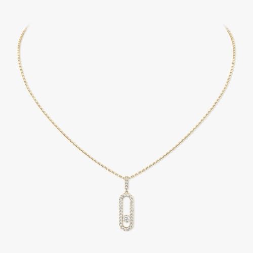 Necklace in yellow gold 750 with a large Move Uno motif pendant pavé-set with ome moving diamond at its heart