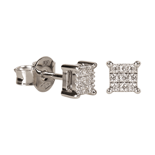 Square shaped studs earrings in white gold 750 set with a total of 18 diamonds