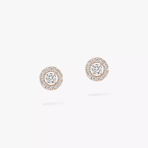 Studs earrings in rose gold 750 featuring a 0.03 ct brilliant-cut diamond as center stone surrounded by delicate halo of micro-set diamonds