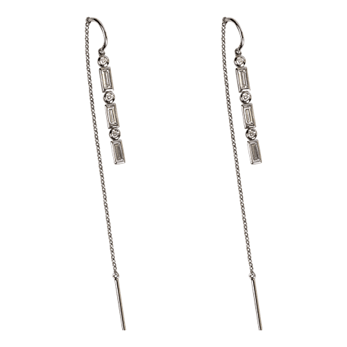 Threader earrings in white gold 750 set with 12 bageutte and brilliant cut diamonds